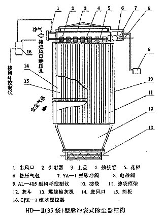 本機(jī)采取環(huán)隙噴吹原理,氣流引射量大,清灰效果好單機(jī)可以組合范圍2-12個(gè)單元。