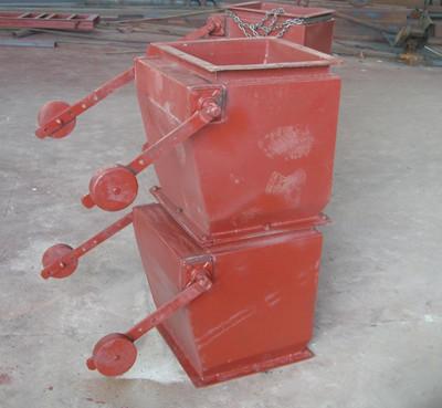 3、制造時,要求翻板和管口完全密合,軸轉動應靈活。重錘在搖臂上的位置,運行時需進行調(diào)整,以使上下翻板輪流排料。