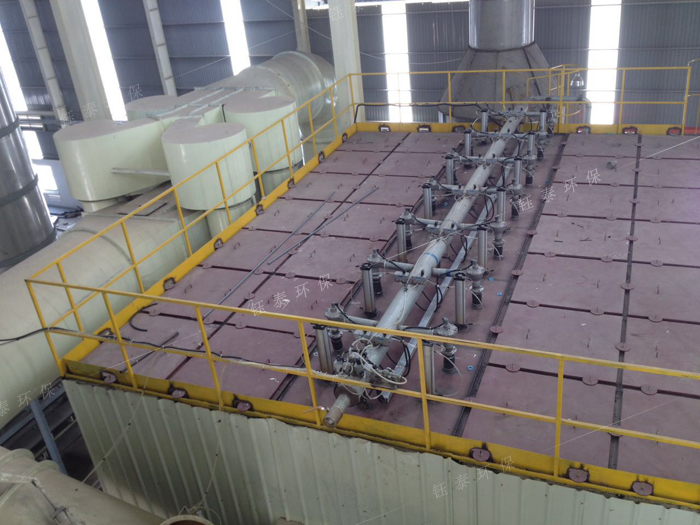 噴霧干燥塔除塵器采用高溫針剌氈濾料作為過濾材料,透氣性能強,除塵效率高。采用反吹除塵法,不僅能凈化一般的含塵硫氣體,還能處理入口濃度達1300g/Nm3的含塵氣體。煙氣中所含的水蒸氣由于其溫度較高,在100℃左右,初呈氣態(tài);從噴霧塔出來后,溫度有所降低,冷凝成水滴附在煙氣中的塵粒上,呈現(xiàn)霧狀;進入氣箱脈沖袋除塵器時塵粒即被捕集下來。